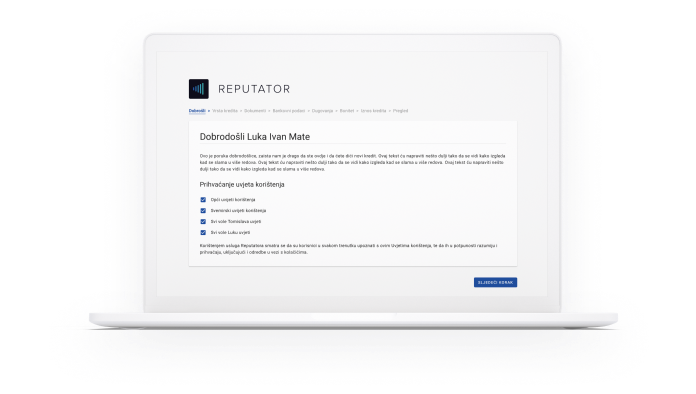 Reputator je idealan za kreditne institucije, banke i štedionice. Mi predstavljamo novi prodajni kanal prema Vašim klijentima, informatički pismenim građanima koji su navikli procese poput kreditnih procjena obavljati online.